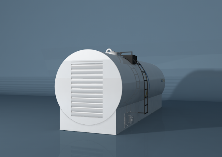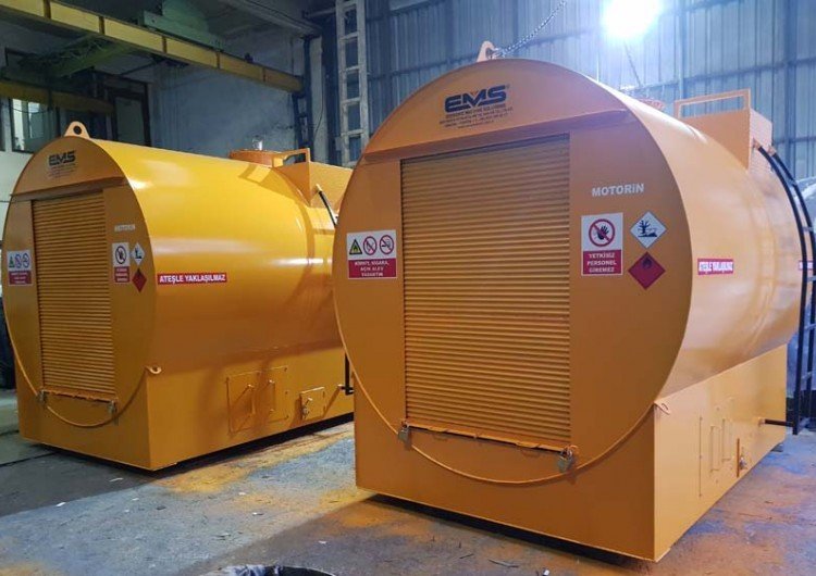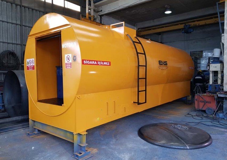 Tanklar yatay eksen tipinde ve silindirik olarak imal edilmekte olup, S 235 JR (EN 10025) çelik karbon sacların kıvrılması ile birbirine birleştirilerek üretilir. Ürün altı ayak kenarları içten destekli metaller ile yanları komple sac ile kapatılır. Ayrıca tank önüne tank boyutunda sac kıvrılarak pompa odası yapılır. Pompa odası kapısı müşteri isteğine göre kilitlenebilir sac kepenk veya metal kapıdan imal edilir. Bu tank tipi mobil istasyonlar arasında en güvenlikli ve en kullanışlı olma özelliğine sahiptir. kullanılan malzemeler ve tüm bağlantı ürünleri akaryakıt ürünlerine uyumlu şekilde imal edilmektedir. Ürünler pas önleyici astar ve son iki kat boya ile kaplanarak müşterilere teslim edilir. Ayrıca Bu ürün dispanser ile donatılarak yakıt akışkanlığı sağlanır. Pompa bağlantıları ve elektrik aksamları hazır halde müşteriye teslim edilir.